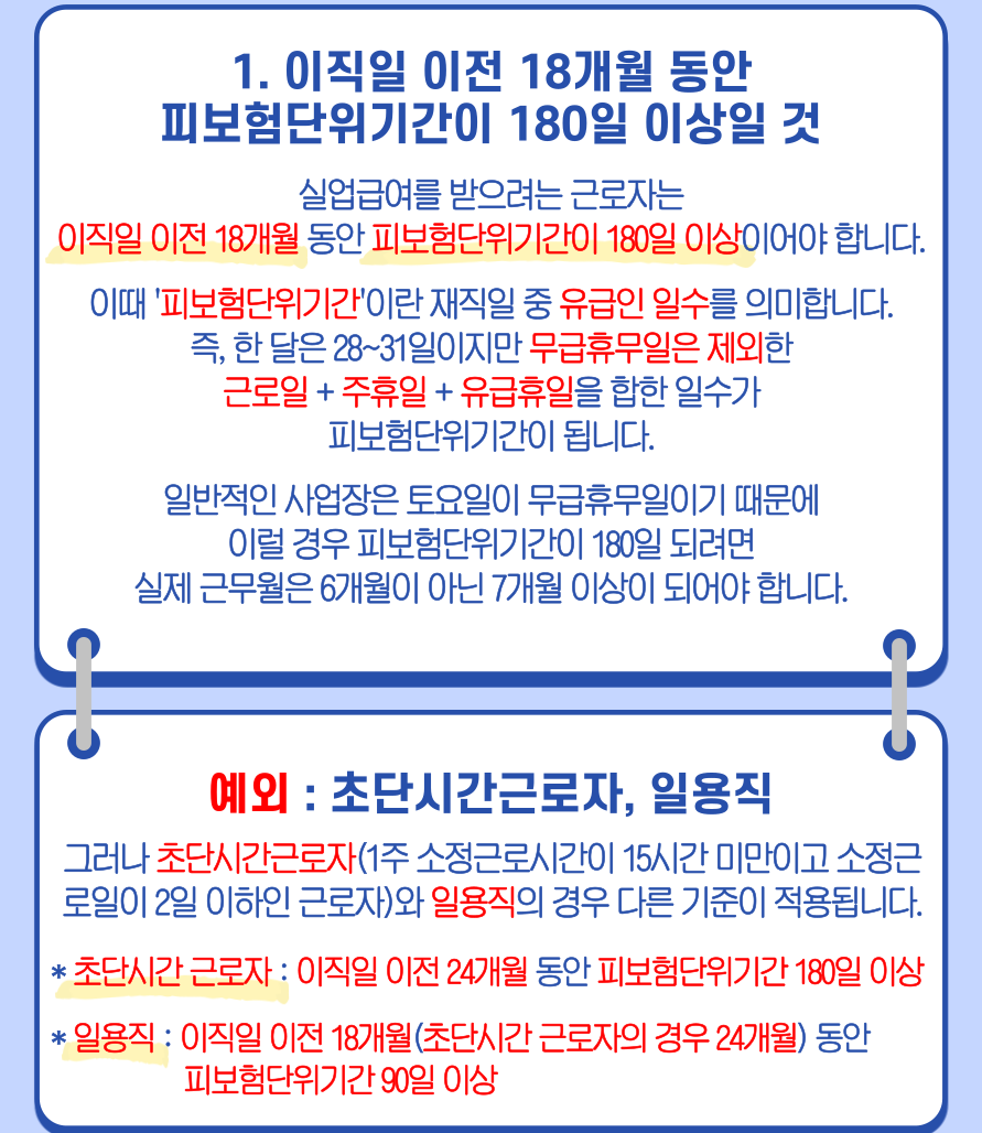 - 고용보험 가입기간 요건