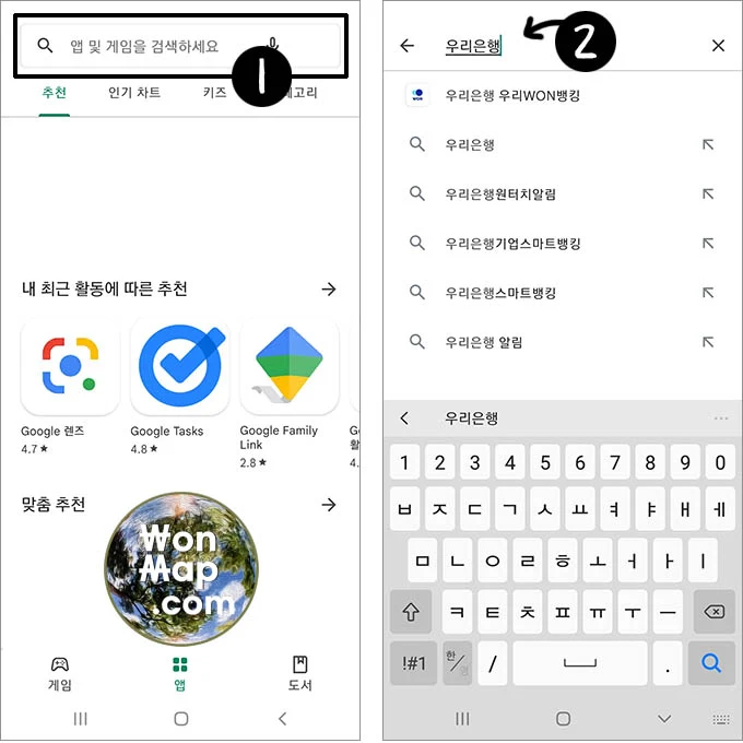- 앱 검색: 상단의 검색창에 원하는 앱 이름이나 키워드를 입력합니다.