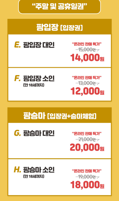 * ABC 입장료 캘린더를 클릭하시어 A,B,C 요금을 꼭 확인해주세요!