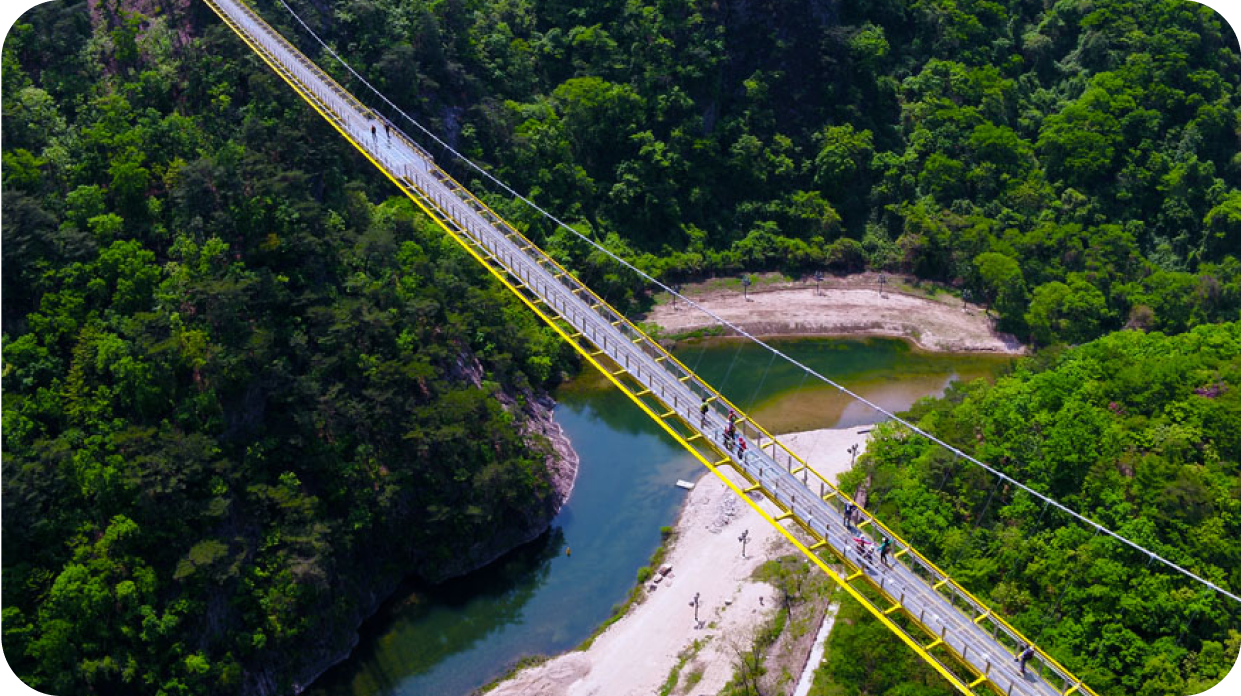 - 출렁다리 위에서는 절대 뛰거나 심하게 움직이지 말아야 합니다. 안전 수칙을 철저히 준수해주세요.