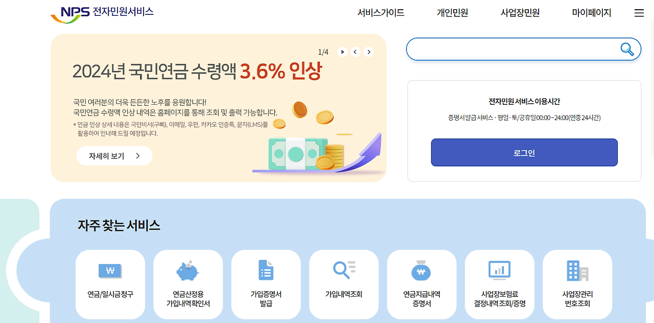 - 국민연금공단 홈페이지 접속