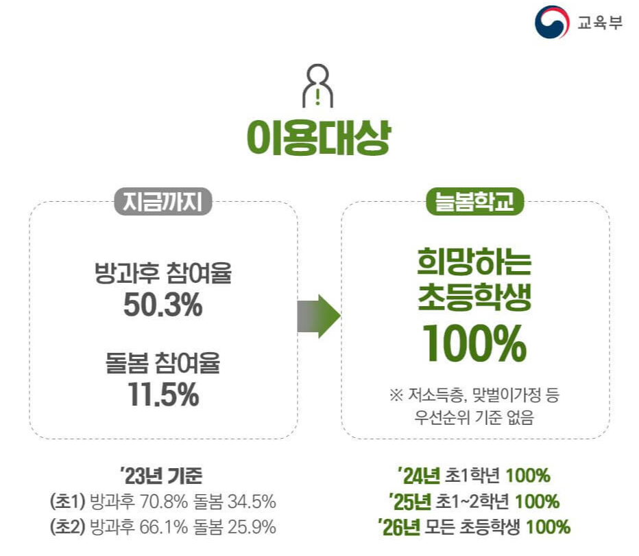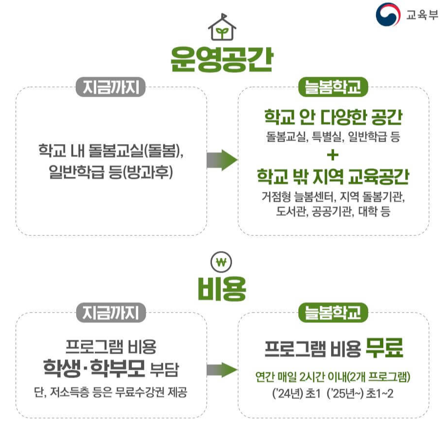늘봄교실은 초등학교 방과후 돌봄교실의 새로운 명칭으로, 학생들의 전인적 성장을 지원하는 국가 차원의 교육 프로그램입니다. 특히 2025년부터는 더욱 체계적인 운영 시스템을 도입하여 학생들에게 양질의 교육 서비스를 제공하고 있습니다.