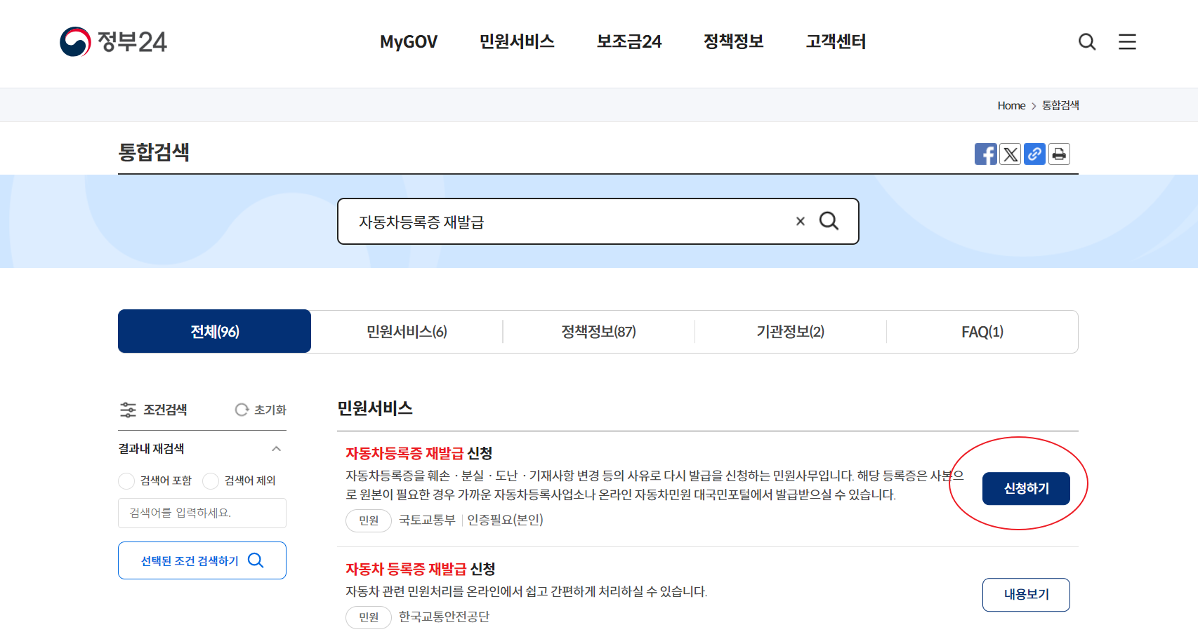 정부24(www.gov.kr)에서는 편리하게 자동차등록증을 재발급받을 수 있습니다.