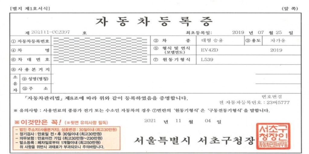 - 법인 차량의 경우 추가 서류 요구될 수 있음