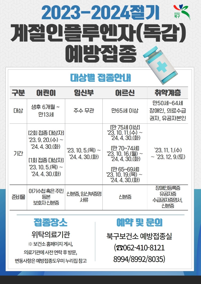 2024년 독감 예방접종 무료 대상자들은 이 기간 동안 반드시 접종을 완료해야 합니다. 특히 독감 유행 시기 전인 11월 말까지 접종을 마치는 것이 좋습니다.
